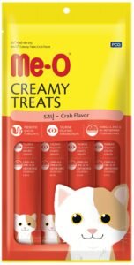 For a hydrating snack, try Me-O Creamy Treats, their smooth texture is perfect for cats who turn up their noses at water bowls.