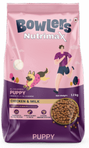 Puppies require high-calorie and protein-rich diets to support rapid growth and development. Choose puppy-specific formulations rich in DHA for brain development. Bowlers Nutrimax Puppy Formula includes natural ingredients to support their immunity and energy needs.