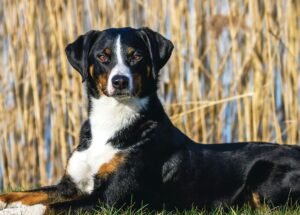Appenzeller Sennenhund is a rare breed of working dog from Switzerland. They are one of the four regional breeds of Sennenhund or Swiss mountain dog, all of which are characterised by a distinctive tricolour coat (black, tan, and white or sometimes brown, tan, and white). They are lively, athletic, and protective. They are really strong and quick to learn, and need a lot of time outdoors.